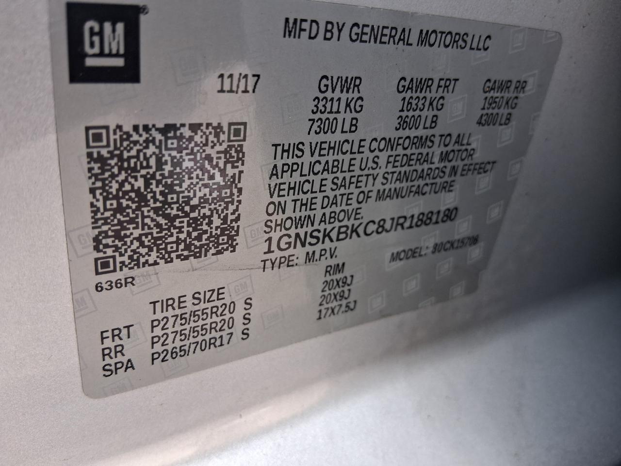 1GNSKBKC8JR188180